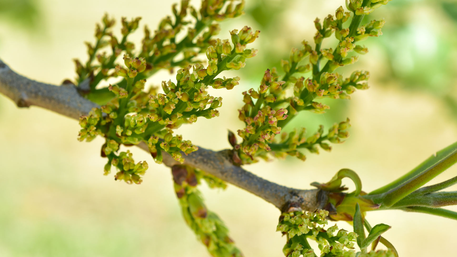 Dicha floración en el pistachero se produce de manera gradual y se anticipa a la brotación, donde lentamente se va cubriendo de follaje el árbol. Sin embargo, en el caso del pistachero es algo más especial si la comparamos, por ejemplo, con el almendro. Esto ocurre porque contamos con flores productivas femeninas y flores masculinas por tratarse de un árbol dioico. En esta fase, es importante asegurar una buena calidad del polen, y este factor depende mucho de la climatología (incontrolable) y de la situación nutritiva del árbol (controlable).