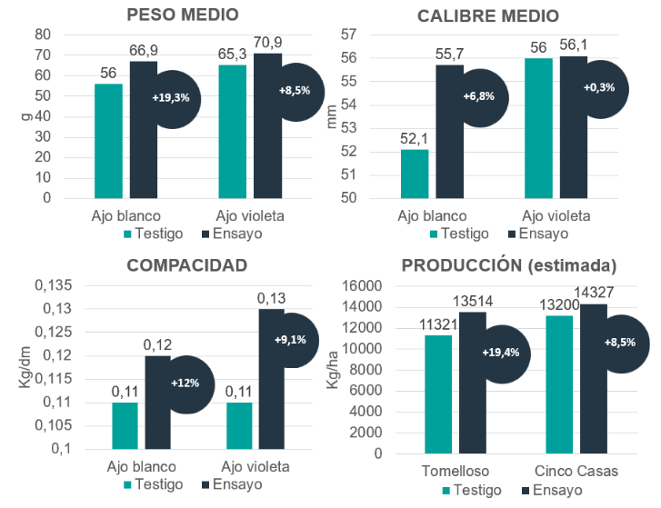 • Ajo blanco: aumento productivo de 2193 kg/ha.